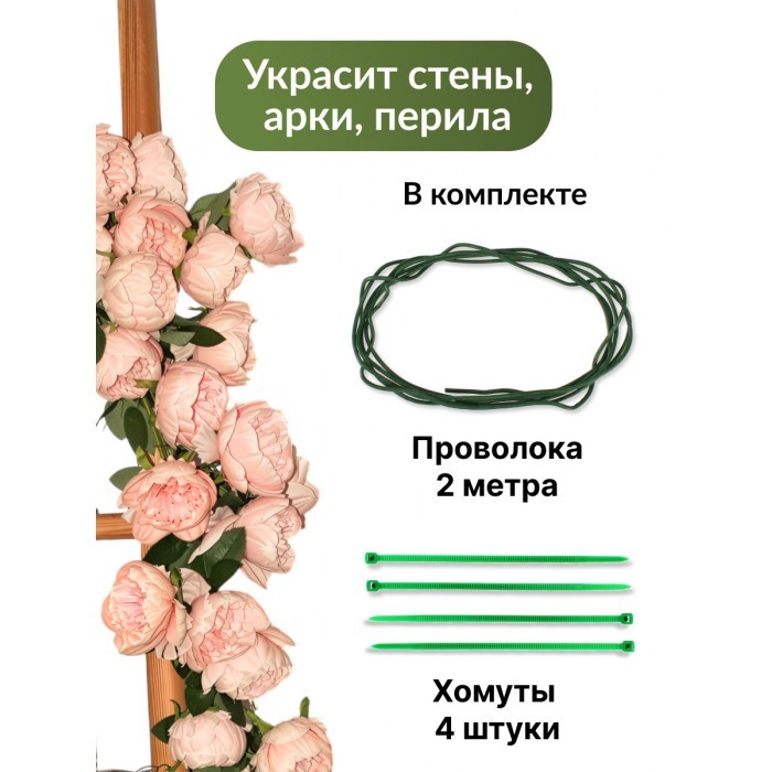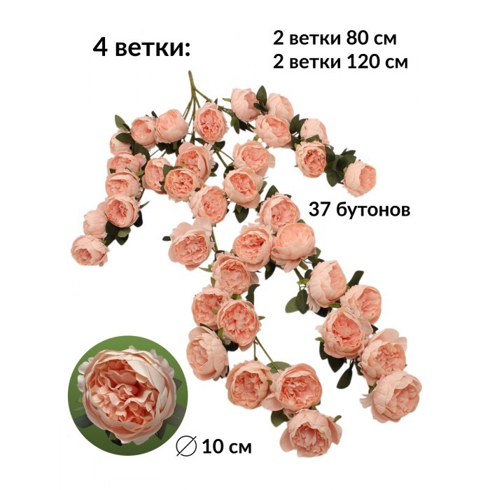 Цветы искуственные Пионы каскадные (37 штук, 120 см, цветок 10 см) розовый теплый 265451