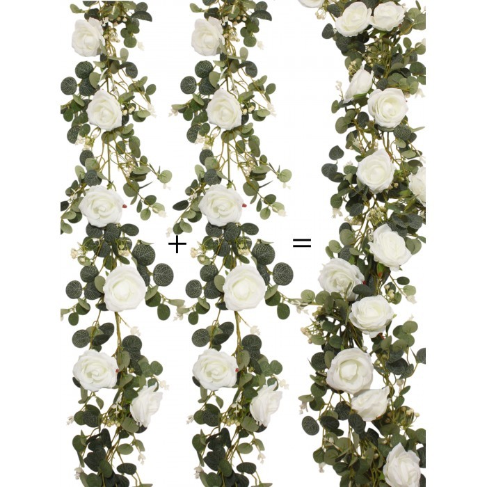 Цветы искуственные Розы Лиана (7см-10шт, 180 см, 2 ветки) белый 265913