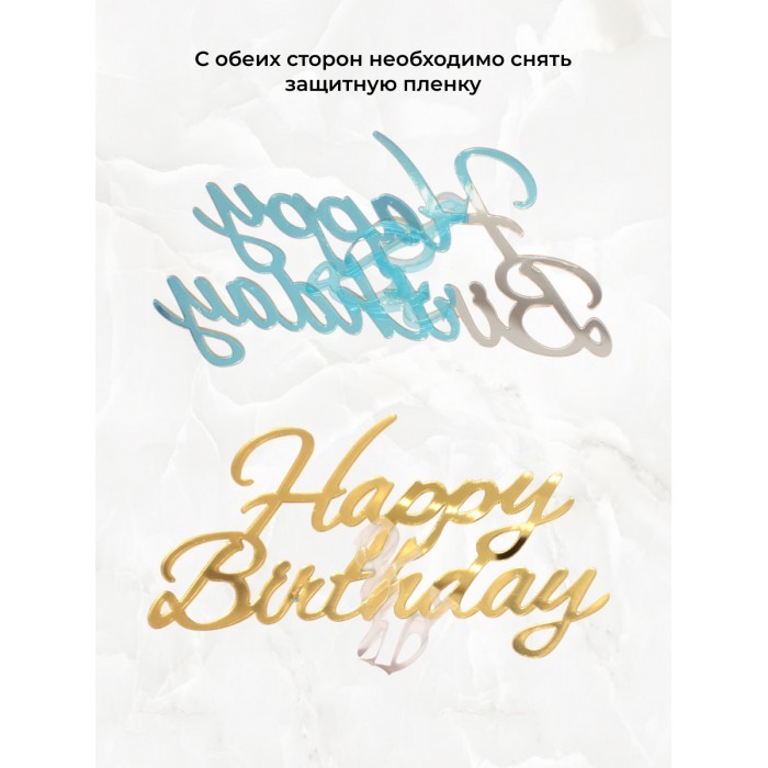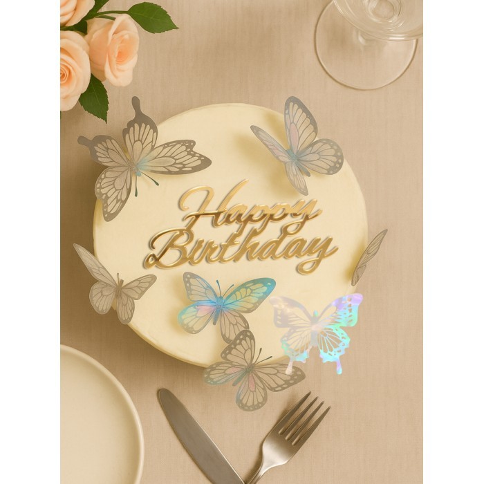 Топпер зеркальный Happy birthday+Бабочки 6 шт, золото 266156
