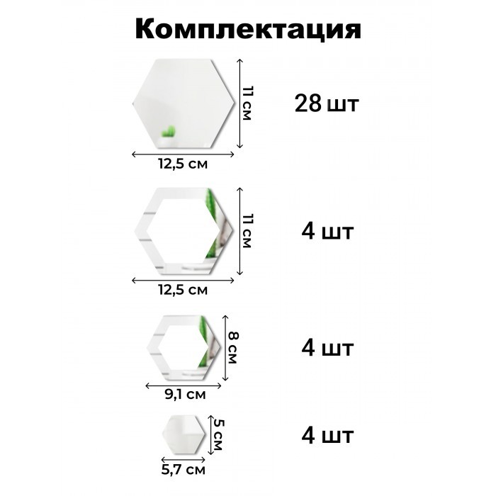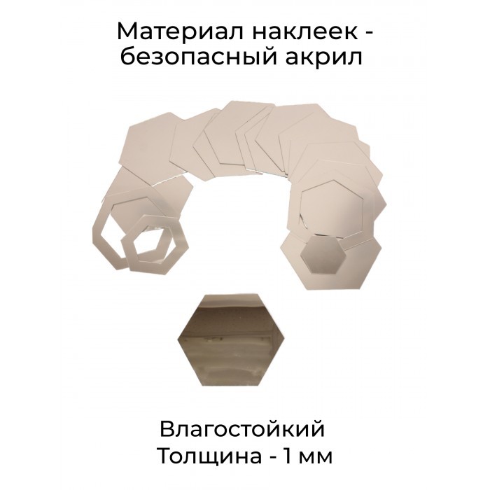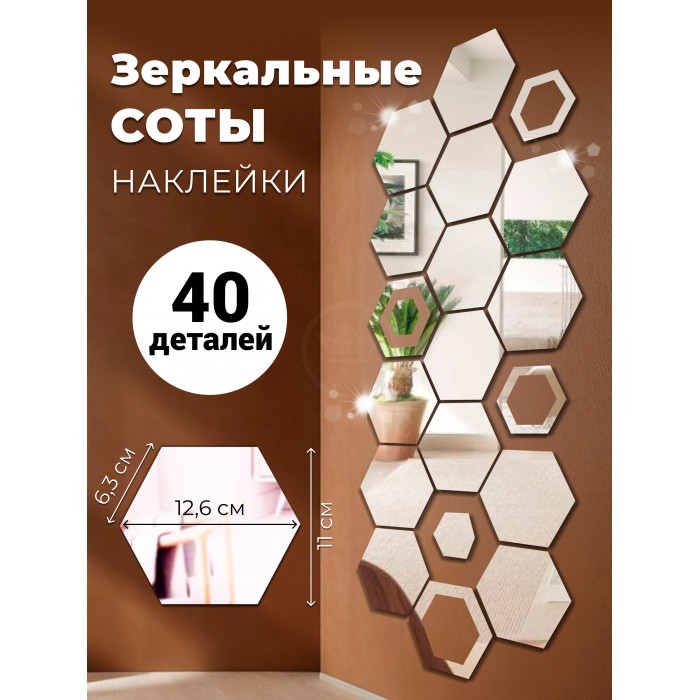Интерьерные зеркальные наклейки Соты-2шт, 40шт серебро 265877