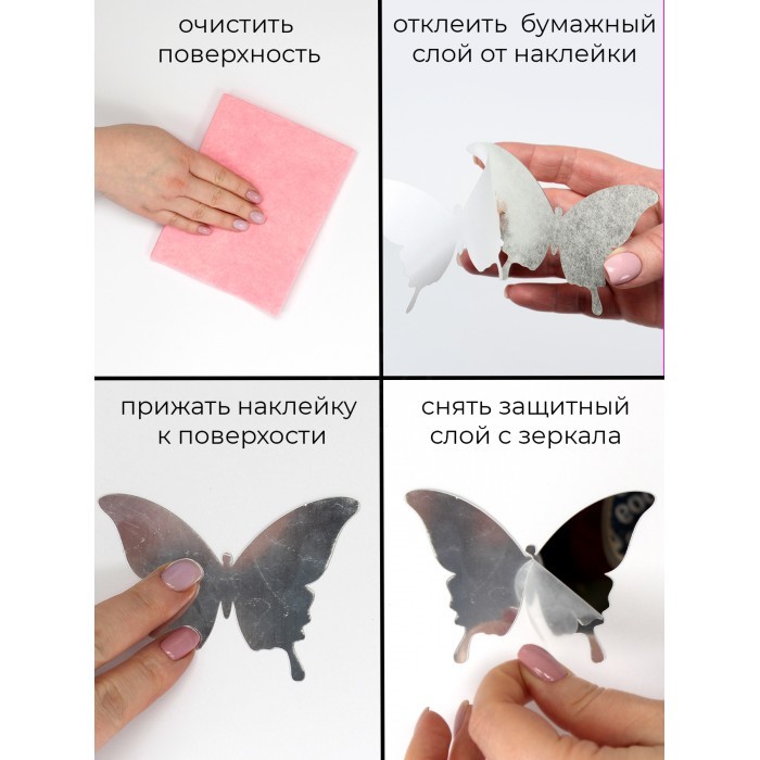 Интерьерные зеркальные наклейки Бабочки-2 набора ( 72 штук ) серебро 266107