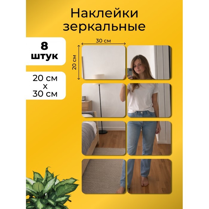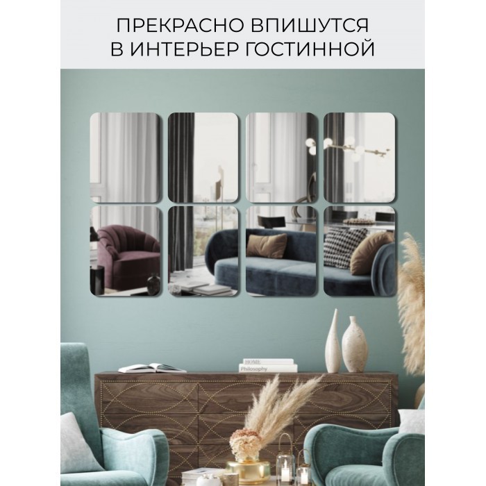 Интерьерные зеркальные наклейки Прямоугольник 8 шт-2 НАБОРА (20*30 см) 266416
