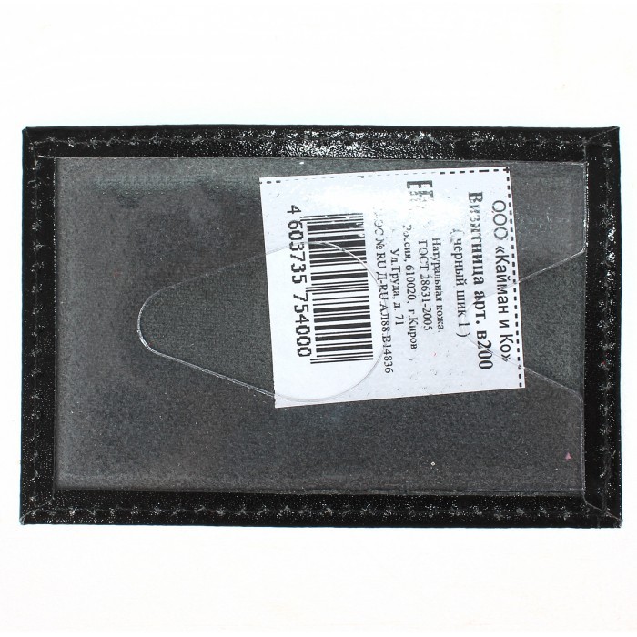 Обложка пропуск/карточка/проездной Croco-В-200 натуральная кожа черный шора (1000) 221729