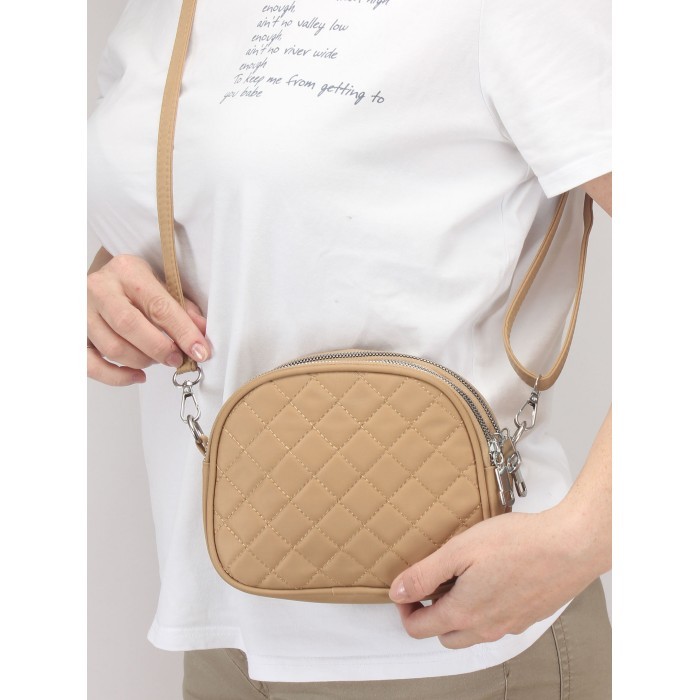 Сумка женская текстиль MF-K 881-6-mpl (стежка), 3отд, плечевой ремень, (УЦЕНКА/ДЕФЕКТ: сломан зубчик на молнии) бежевый 245305