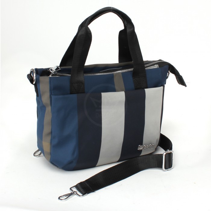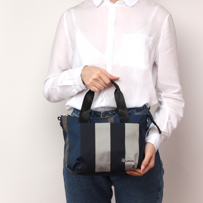 Сумка женская текстиль BoBo-0710, 1отд, плечевой ремень, (УЦЕНКА/ДЕФЕКТ: разводы на ткани) синий/серый 235348